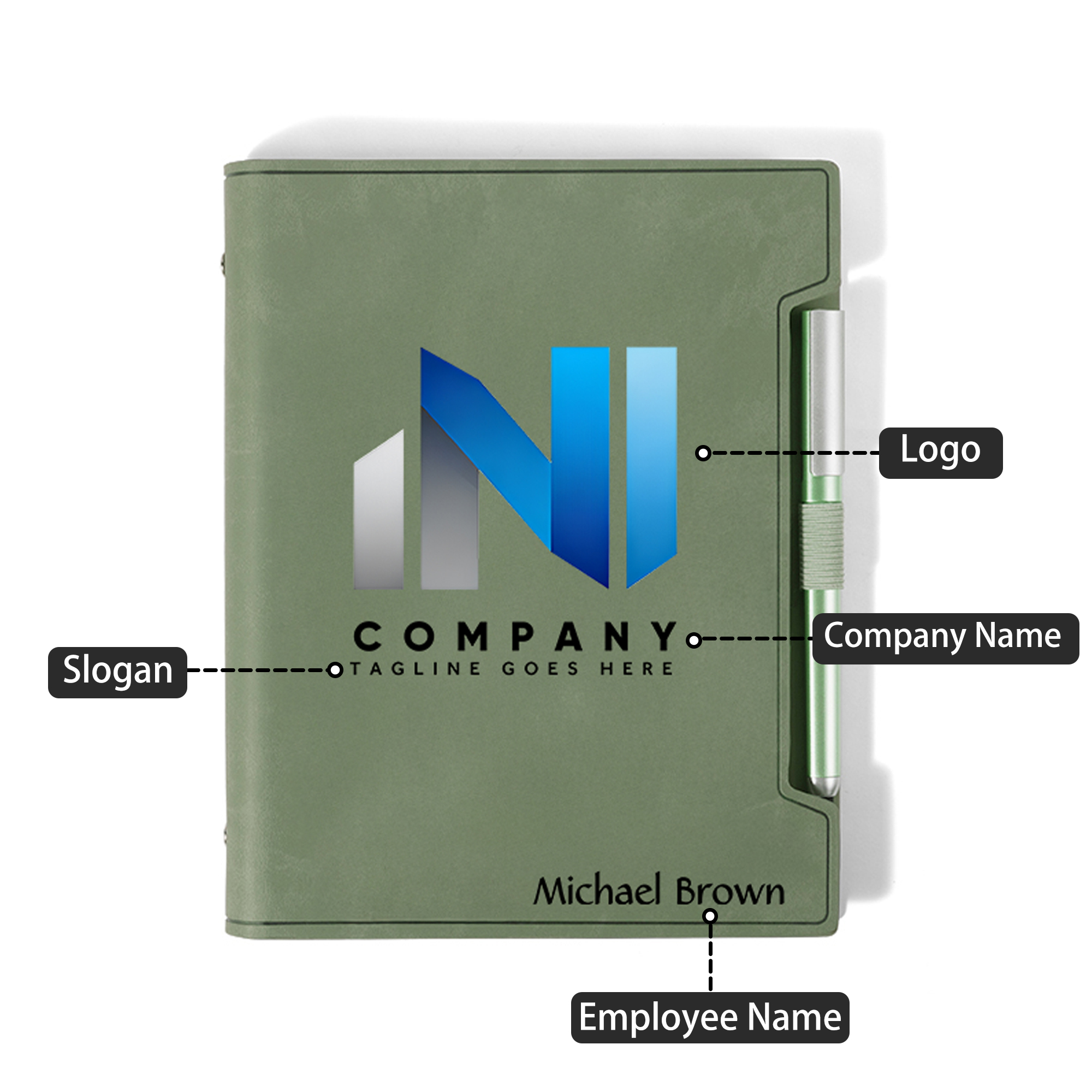 Custom Touch - Personalize the notebook with the company logo, name, slogan and employee name. This customization turns the notebook into a distinctive gift that expresses recognition and support.