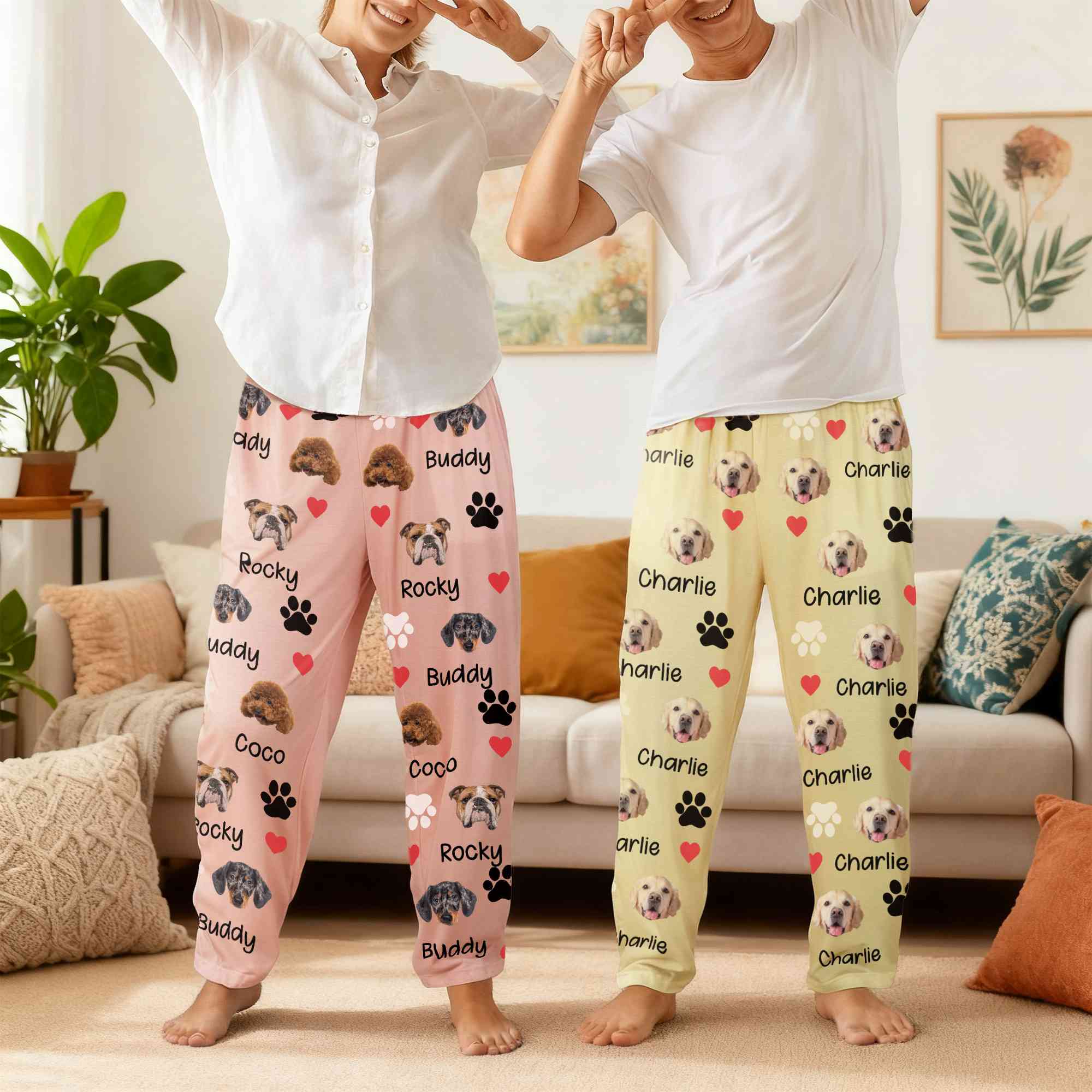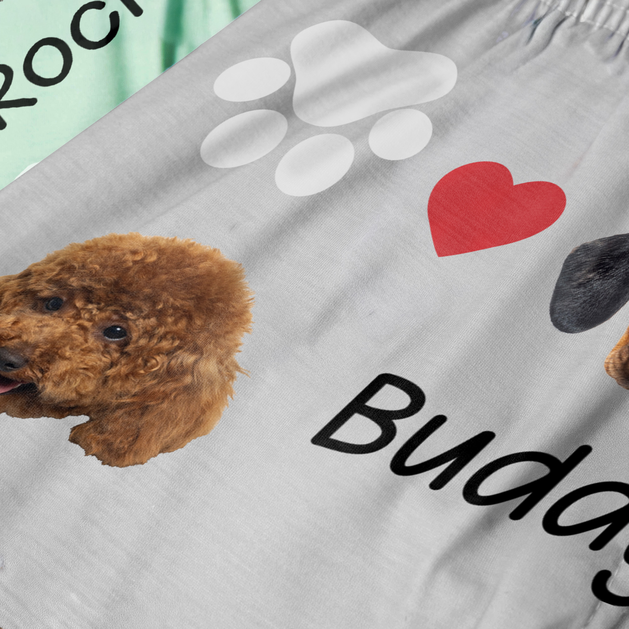Personalized Touch - Upload your pets’ photos and include their names to create a unique pair of lounge pants that celebrates the special connection you share with your dogs, cats, or other furry companions.